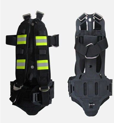 3. 背托總成(背板,腰帶,肩帶,氣瓶固定帶):肩帶由阻燃聚酯織物制成,背帶采用雙測科調(diào)結(jié)構(gòu),使重量落于腰胯部位,減輕肩帶對胸部的壓迫。背托由炭纖維復(fù)合材料注塑制成,具有阻燃及防靜電功能,在背托內(nèi)側(cè)襯有彈性護墊,可是佩戴者舒適。腰帶采用卡扣設(shè)計、易于調(diào)節(jié)。