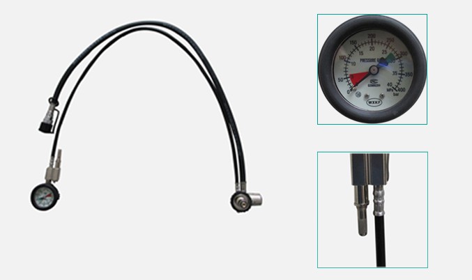 4. 減壓總成(快速鎖緊插頭,氣源壓力表,氣瓶余壓報警器,高壓導(dǎo)氣管組,中壓導(dǎo)氣管組,減壓器插頭座組):壓力表表盤采用熒光材料,在暗處也可以清楚的觀察到壓力值。表殼采用高強度抗沖擊材料,并設(shè)有橡膠保護套,起到防水、減震、防塵等作用。報警裝置連在接近壓力表的高壓導(dǎo)管上,氣瓶中的壓力降至5MPA時,報警哨會發(fā)出持續(xù)的報警聲響。