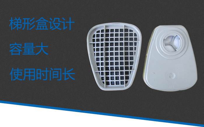 三 金盾K型4號濾毒盒采用梯形盒設(shè)計,內(nèi)部可裝填更多活性炭藥劑,容量大,吸附效果好,使用時間長。